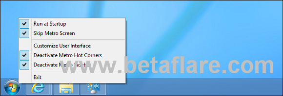 下载并安装 StartMenu8 后,右键StartMenu8 开始图标你会发现很多有用的选项,包括跳过win8开始屏幕,隐藏charms 边栏等等。