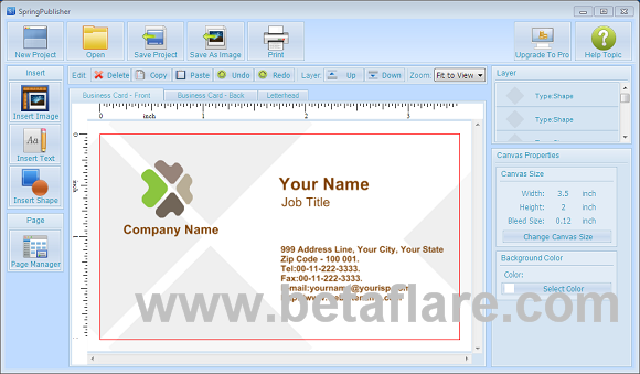 SpringPublisher 是专门用于设计制作和打印名片,广告传单,明信片,印在信纸的信头,生日卡片等,使用简单容易,按官方说法可以在数分钟之类制作完毕。最新版本是3.0,系统支持xp\vista\win7\win8。免费版和收费版区别在于图片解析度上,当然免费版本已经够用了,这里提供下载的是SpringPublisher 的免费版本。